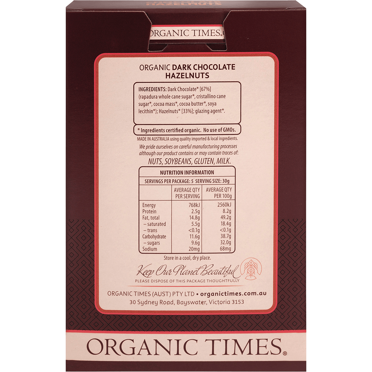 Organic Times Dark Chocolate Covered Hazelnuts | 150g
